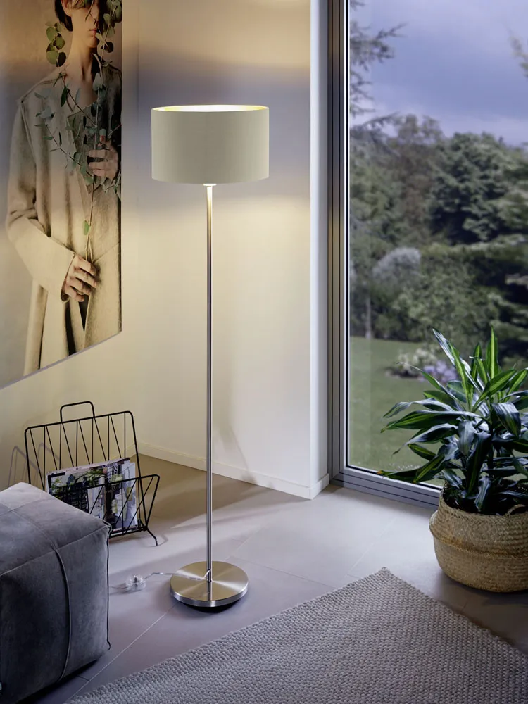 Beltéri állólámpa, textil E27 60W szürkésbarna/arany Maserlo