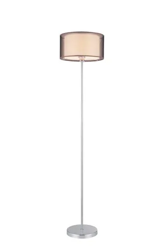 Időtlen megjelenésű állólámpa 1 db foglalattal, vezetékes kapcsolóval. 157 cm magas, króm színű fém lámpatest valamint barna és fehér színkombinációjú, 35 cm átmérőjű textil lámpabúra. Az állólámpa E-27-es foglalatú, max. 60W teljesítményű energiatakarékos fényforrással is használható.