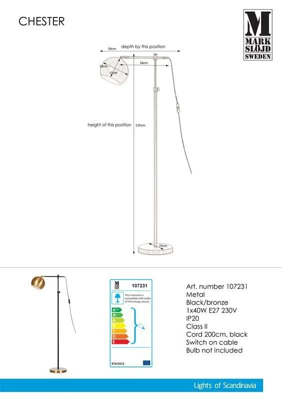 MARKSLÖJD CHESTER Állólámpa fekete/bronz E27 1x40W