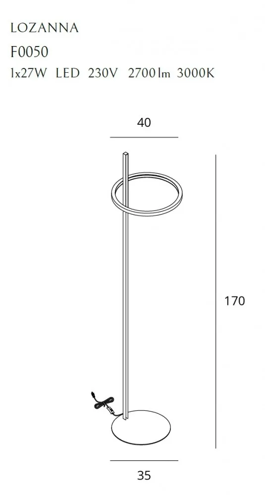 Moc/Power: 1 x 27W LED 230V, 2700 LM, CRI90 3000K_x000D_ W: 40cm, D: 40cm, H: 170 cm, Ă: 40 cm, kabel: 200cm_x000D_ MateriaĹ‚/Material/: stal nierdzewna/ stainless steel_x000D__x000D_ WykoĹ„czenie/Detail finishing: zĹ‚ote/gold_x000D_ LED w komplecie/LED included 3000K