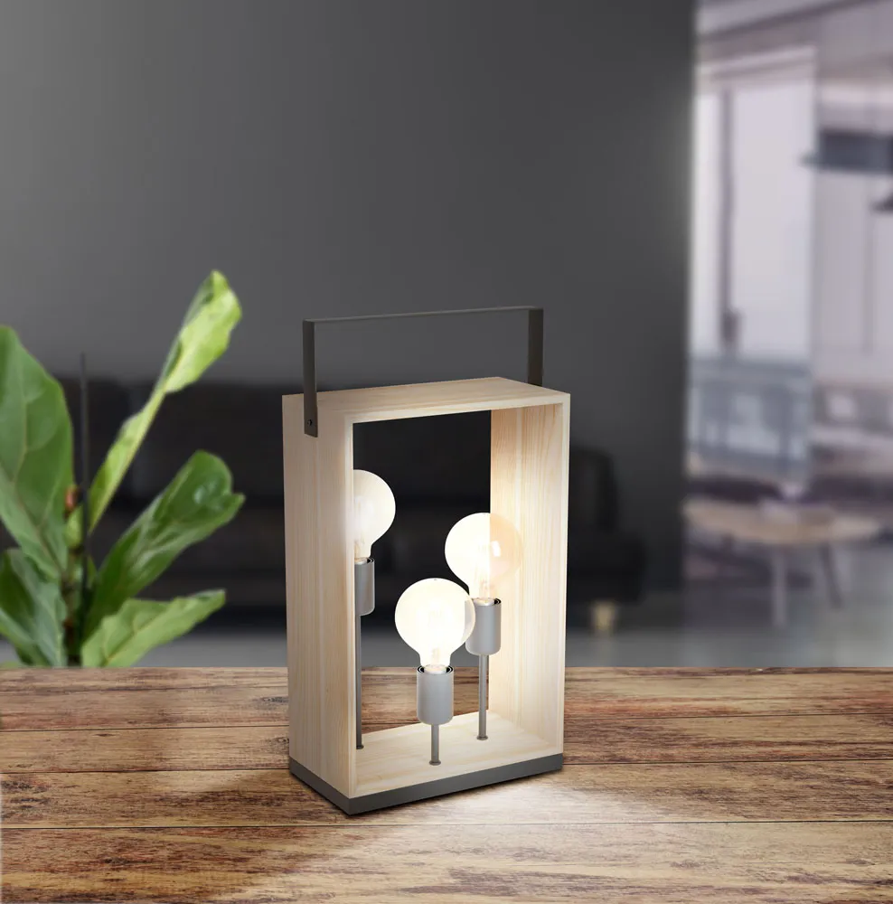 Asztali lámpa E27 3x40W fekete/fa Famborough