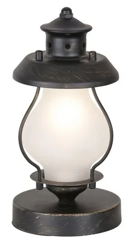 Klasszikus stílusú, rusztikus megjelenésű éjjeli lámpa 1 db foglalattal, kapcsolóval. 12 cm átmérőjű, 26 cm magas, antik arany színű fémből készített lámpatest fehér színű üveg lámpabúrával. A lámpatest E-14-es foglalatú, C37-es típusú, azaz klasszikus gyertya formájú, energiatakarékos LED fényforrással is használható.
