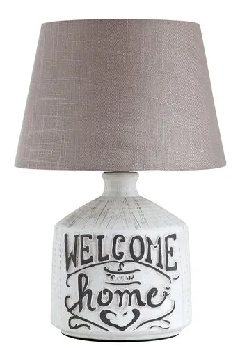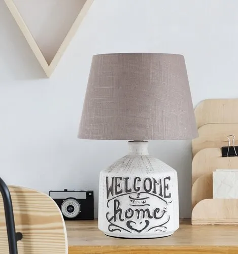Vintage stílusú éjjeli lámpa 1 db foglalattal. 24,5 cm átmérőjű, 35 cm magas, fehér színű, mintás kerámia lámpatest és bézs színű textil lámpabúra. A lámpatest E14-es foglalatú, max. 40W teljesítményű energiatakarékos fényforrással is használható.