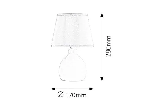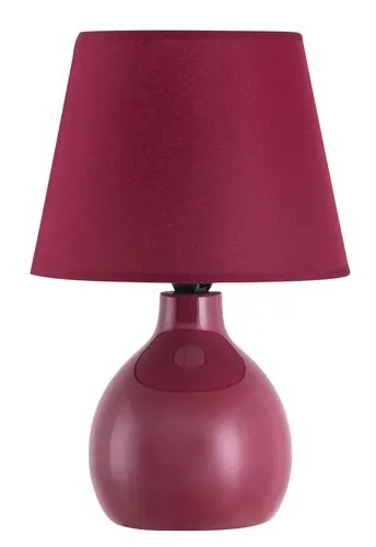 Időtlen megjelenésű éjjeli lámpa 1 db foglalattal. 28 cm magas, 17 cm átmérőjű lámpatest bordó színű kerámia lámpatesttel és textil lámpaernyővel, vezetékes kapcsolóval és IP20-as védettséggel. Az asztali lámpa E-14-es foglalatkialakítású, max. 40W teljesítményű izzóval használható.
