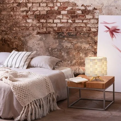 Skandináv stílusú éjjeli lámpa 1 db foglalattal. 22 cm magas, fából és műanyagból készített szerkezet. 24 cm átmérőjű, fehér színű műanyagból készített lámpabúrával, vezetékes kapcsolóval és IP20-as védettséggel rendelkezik. A lámpatest E14-es foglalatkialakítású, max. 40W teljesítményű, energiatakarékos izzóval is használható.