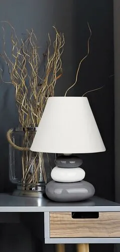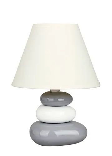 Meghitt hálószobai hangulatot árasztó, modern, egyben minimál stílusú éjjeli lámpa. Fehér és szürke színű, kerámiából készített lámpatesttel és fehér színű textil lámpabúrával, hálózati vezetékkel és kapcsolóval, 25 cm-es magassággal, 18 cm-es átmérővel. A lámpatest max. 40W teljesítményű, E14-es foglalatú, halogén és LED fényforrással használható.
