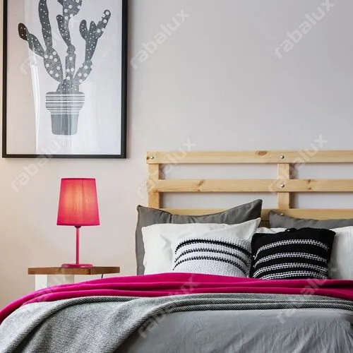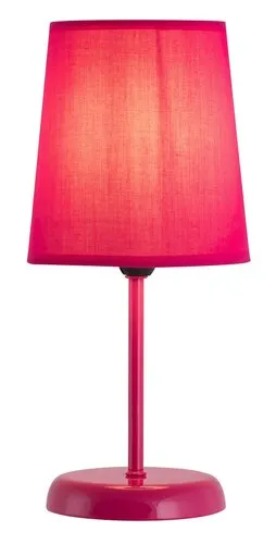 Időtlen megjelenésű éjjeli lámpa 1 db foglalattal. 31 cm magas, 14 cm átmérőjű, rózsaszín fém lámpatest és textil lámpaernyő, vezetékes kapcsolóval és IP20-as védettséggel. Az asztali lámpa E-14-es foglalatkialakítású, max. 40W teljesítményű izzóval használható.