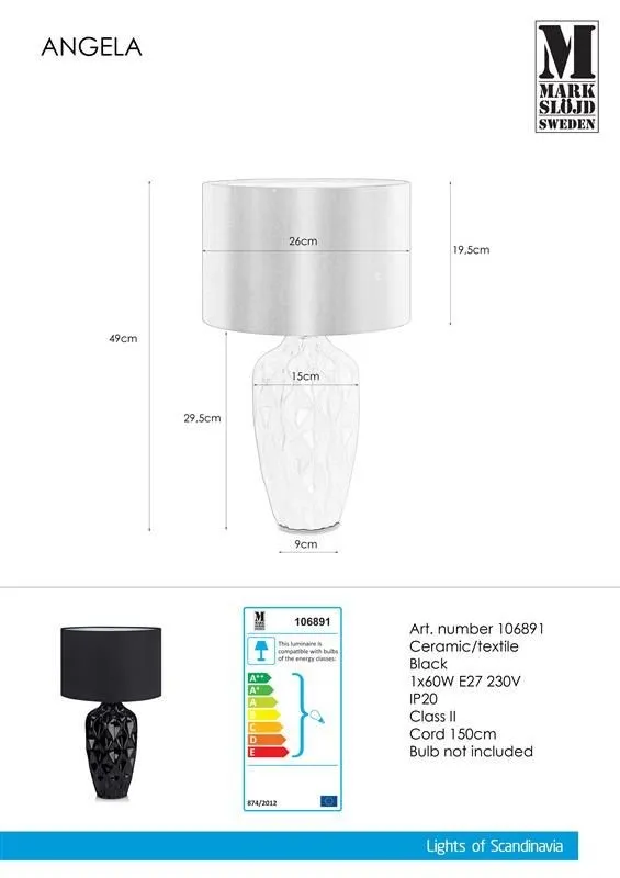 MARKSLÖJD ANGELA Éjjeli lámpa E27 60W fekete