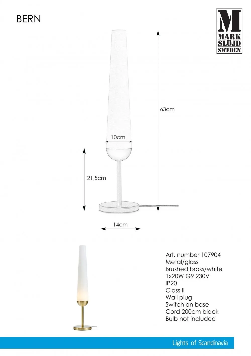 Markslöjd BERN Éjjeli lámpa G9 20W sárgaréz