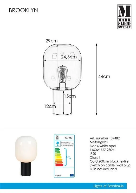 Markslöjd BROOKLYN Éjjeli lámpa E27 60W fekete