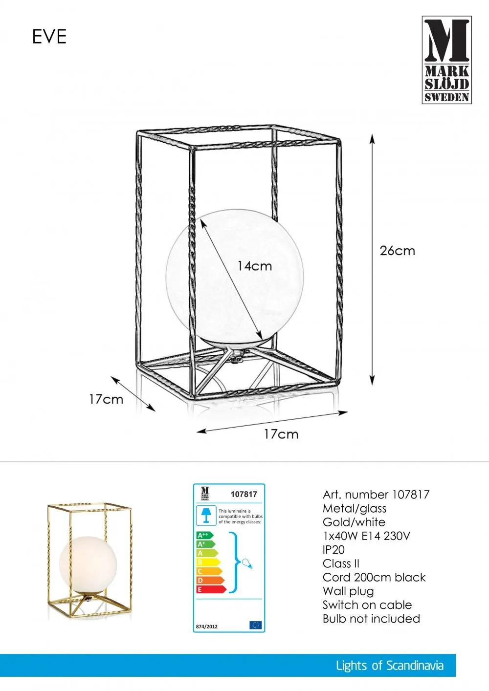 Markslöjd EVE Éjjeli lámpa E14 40W arany