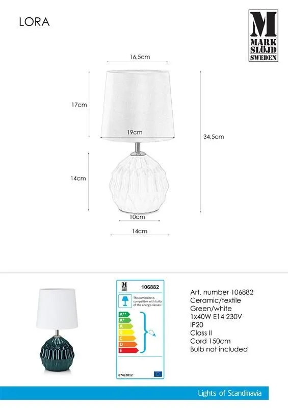 MARKSLÖJD LORA Éjjeli lámpa E14 40W zöld