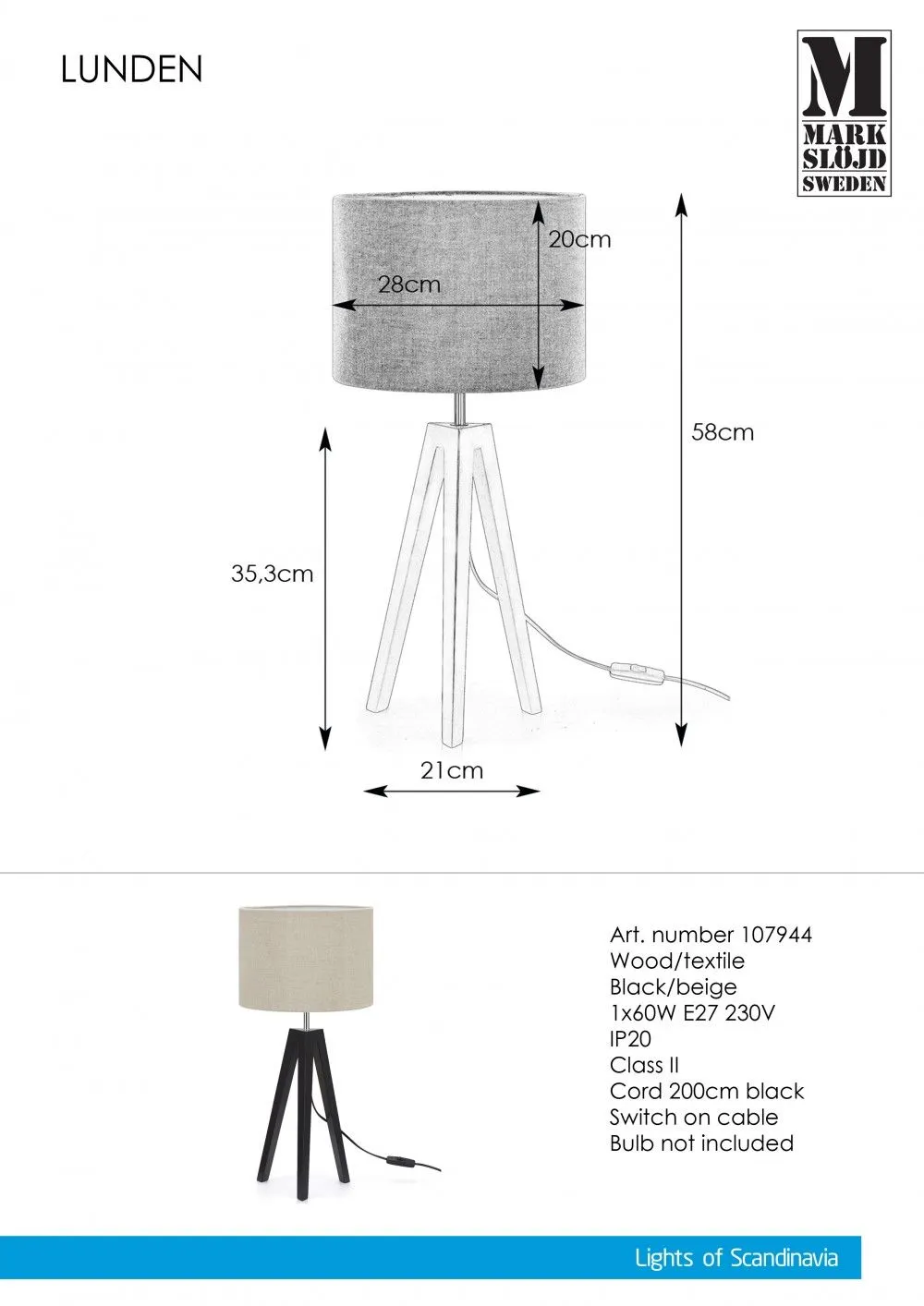Markslöjd LUNDEN Éjjeli lámpa E27 60W fekete,bézs
