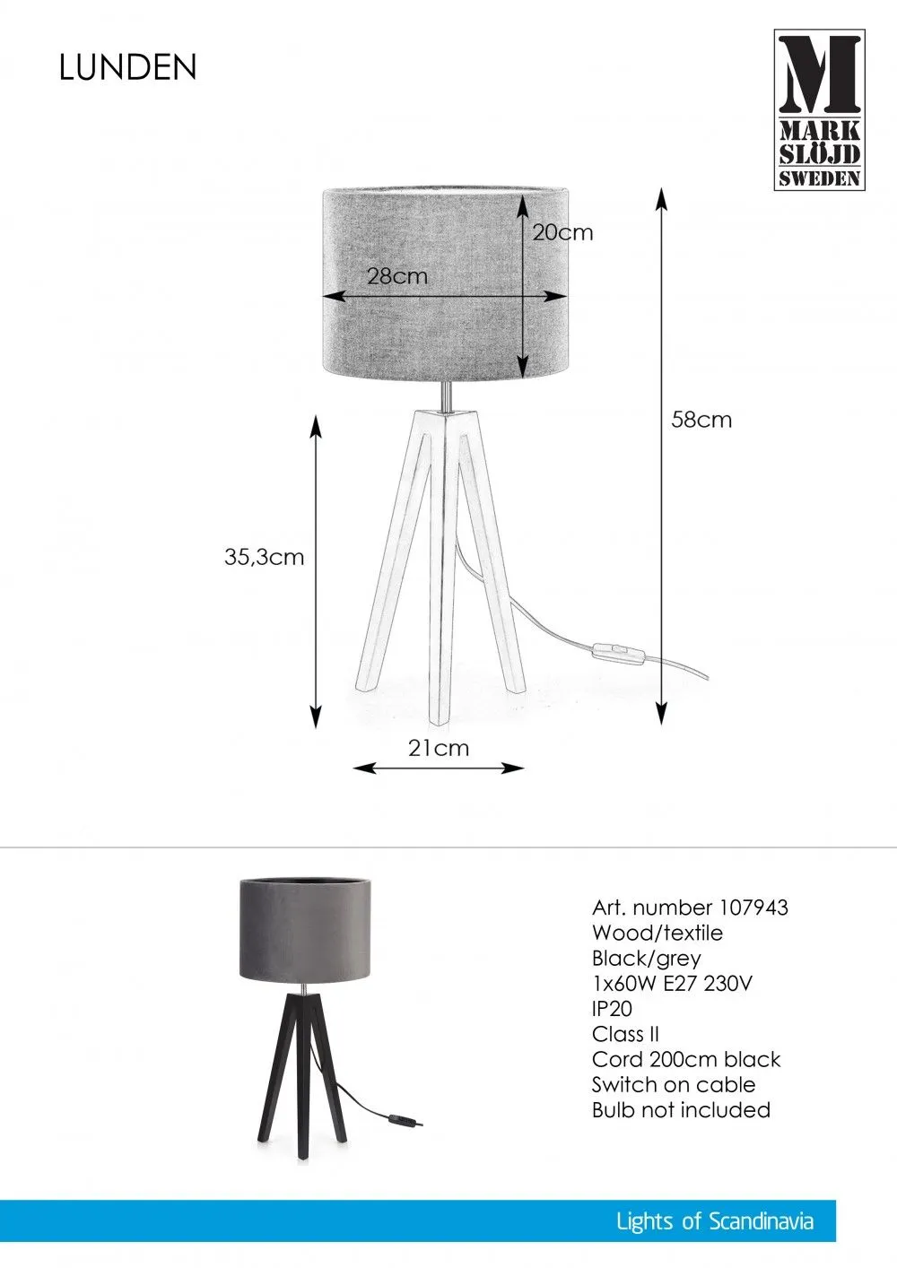 Markslöjd LUNDEN Éjjeli lámpa E27 60W fekete
