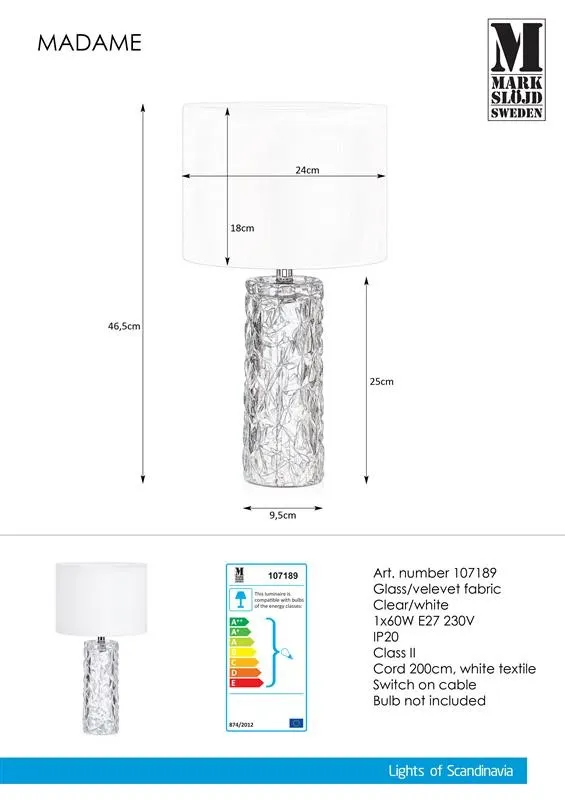 MARKSLÖJD MADAME Éjjeli lámpa E27 60W fehér