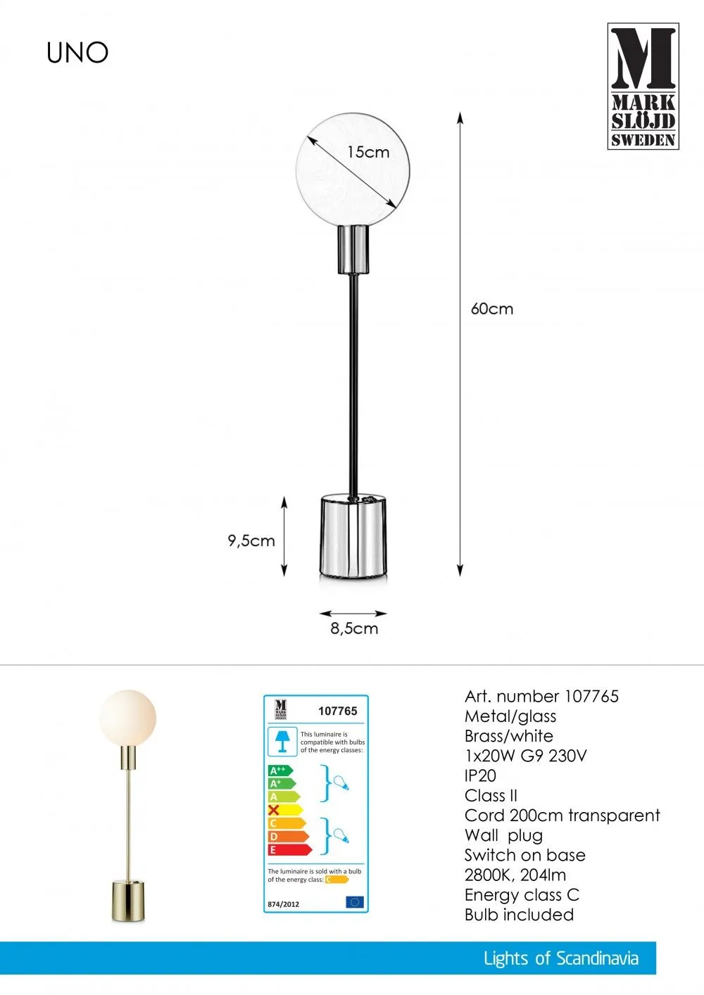 Markslöjd UNO Éjjeli lámpa G9 20W réz