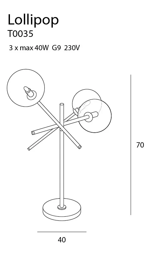 Maxlight LOLLIPOP Éjjeli lámpa G9 3x40W réz