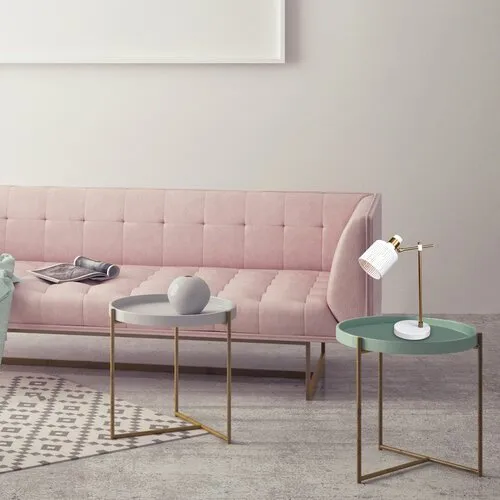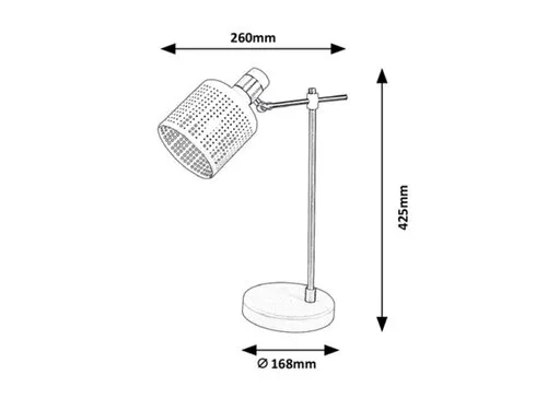 Az indusztriális stílusú Alberta asztali lámpa nappalink, hálószobánk vagy dolgozószobánk figyelemre méltó kiegészítője lehet. A fehér színű, kerek dísztalppal szerelt modell arany-fehér színkombinációban, teljes egészében fémből készül és vezetékes kapcsolóval működtethető. A vezeték anyaga textil. Az Alberta különlegességét a fehér színű, lyukacsos búra adja, amelynek apró résein kijutva jellegzetesen szóródik a fény. A lámpa egy darab, legfeljebb 9 W teljesítményű fényforrással használható, a foglalat típusa E27. Ha a meghitt, otthonos hangulatot szeretnénk erősíteni, válasszunk hozzá meleg fehér fényű fényforrást. Az Alberta asztali lámpa méretei a következők: szélessége 260 mm, magassága 425 mm, a dísztalp átmérője 168 mm. Ezt a modellt fényforrás nélkül szállítjuk.