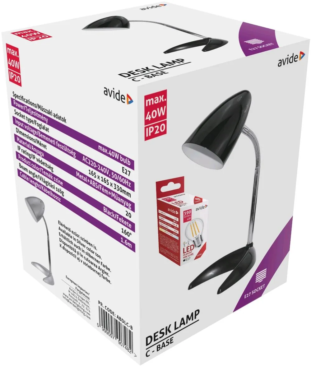 Avide Basic Asztali Lámpa C Talpú Fekete + LED fényforrás