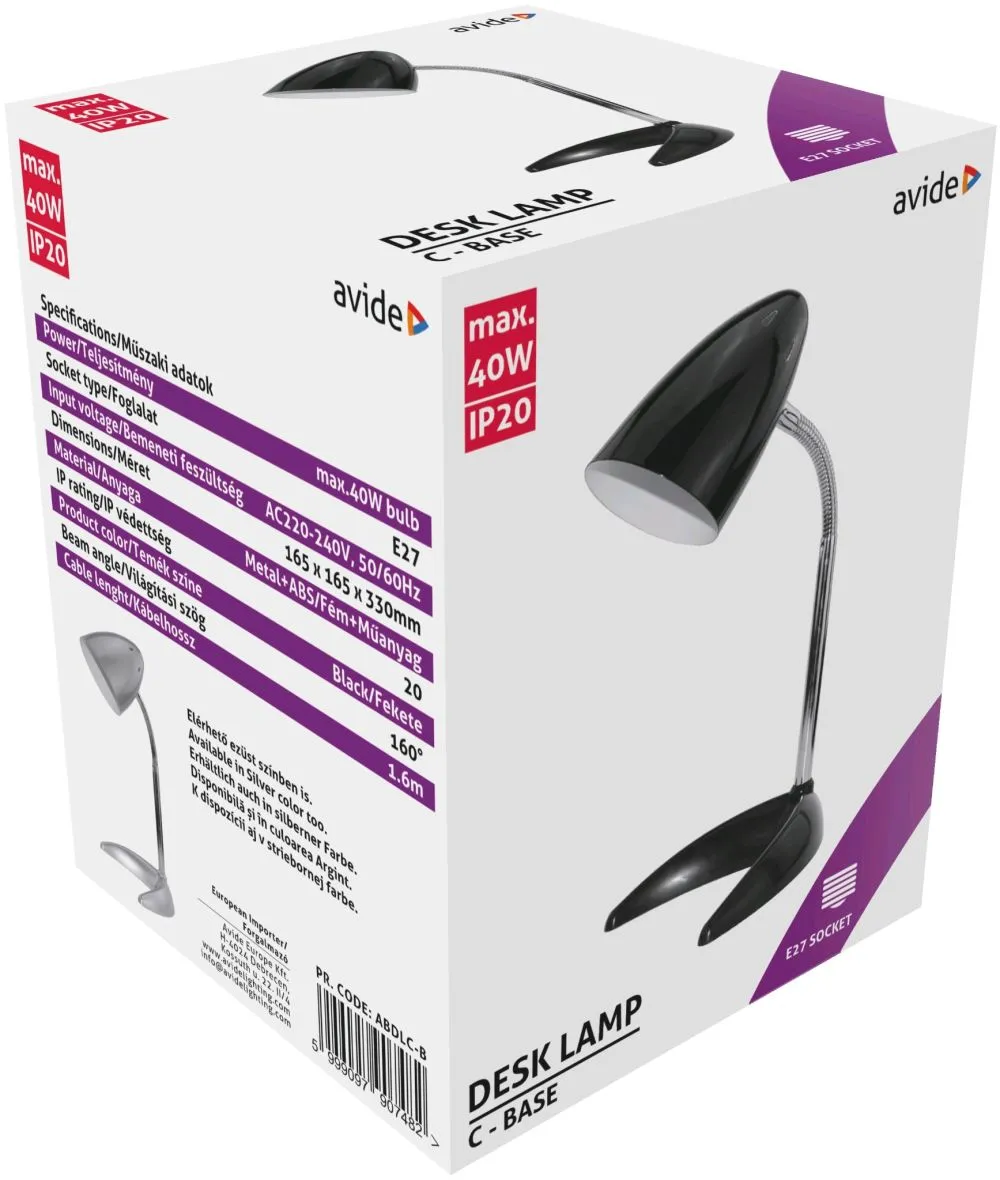 Avide Basic Asztali Lámpa C Talpú Fekete