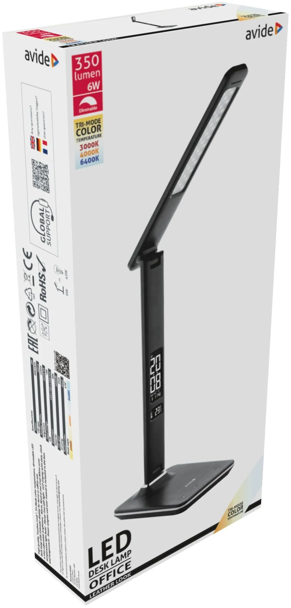 Avide LED Asztali Lámpa Irodai Bőrhatású Naptár Fekete 6W
