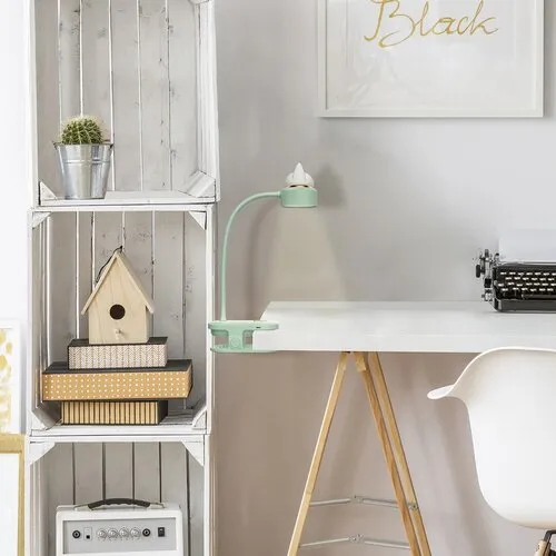 A zöld színben készült Nanda csiptetős lámpa praktikus és rugalmas világítási megoldást biztosít otthonunk szinte bármely helyiségében. Elhelyezhetjük a nappaliban, a dolgozószobában vagy a gyerekszobában; bárhol, ahol írni, olvasni vagy éppen laptopozni szoktunk, és jól jön egy kiegészítő fényforrás. Mivel a Nanda Li-ion akkumulátorral működik, használata nincs helyhez kötve - tetszés szerint felerősíthetjük bármely asztalra vagy polcra. A csiptetős lámpa beépített LED fényforrással rendelkezik, amelynek teljesítménye 2 W, fényereje 200 lumen, színhőmérséklete pedig 3000 K. A fényforrás által kibocsátott meleg fehér fény pihenteti a szemet, ezenfelül kellemes, otthonos hangulatot áraszt. A műanyagból készült Nanda extra funkcióval is rendelkezik: három lépésben dimmelhető, azaz fényerejét tetszés szerint szabályozhatjuk. A modern csiptetős lámpa méretei a következők: a talp hossza 106 mm, a lámpa magassága 154 mm, kinyúlása 106 mm. A Nanda lámpára 5 év garanciát vállalunk.