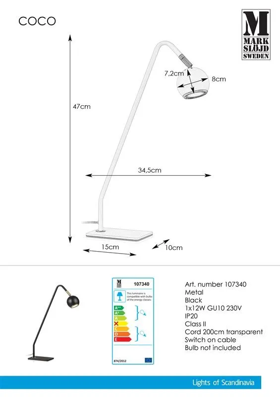 Markslöjd COCO Íróasztali lámpa GU10 12W fekete