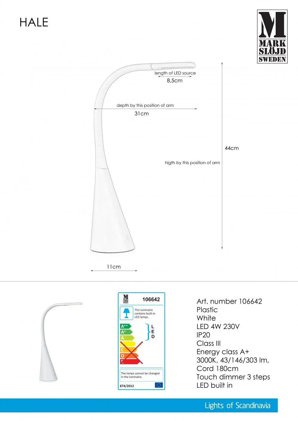 MARKSLÖJD HALE Íróasztali lámpa LED 4W fehér