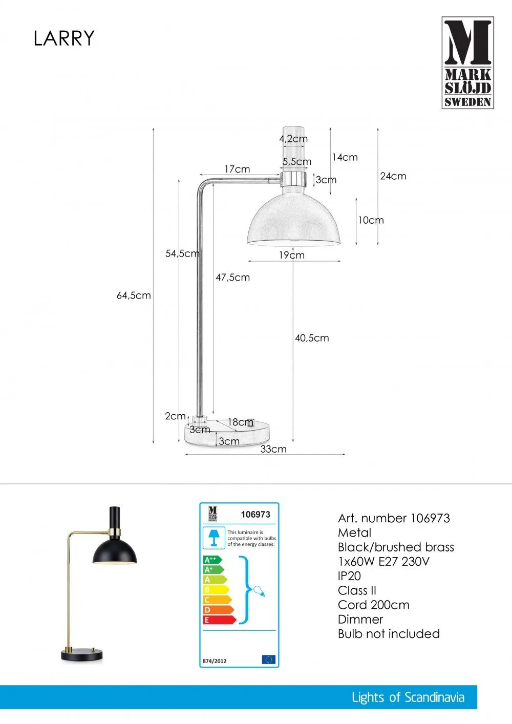 MARKSLÖJD LARRY Íróasztali lámpa E27 60W fekete