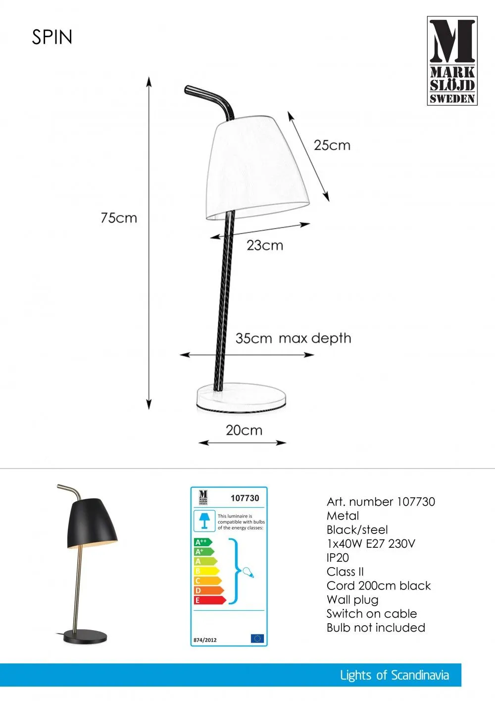 Markslöjd SPIN Íróasztali lámpa E14 40W fekete