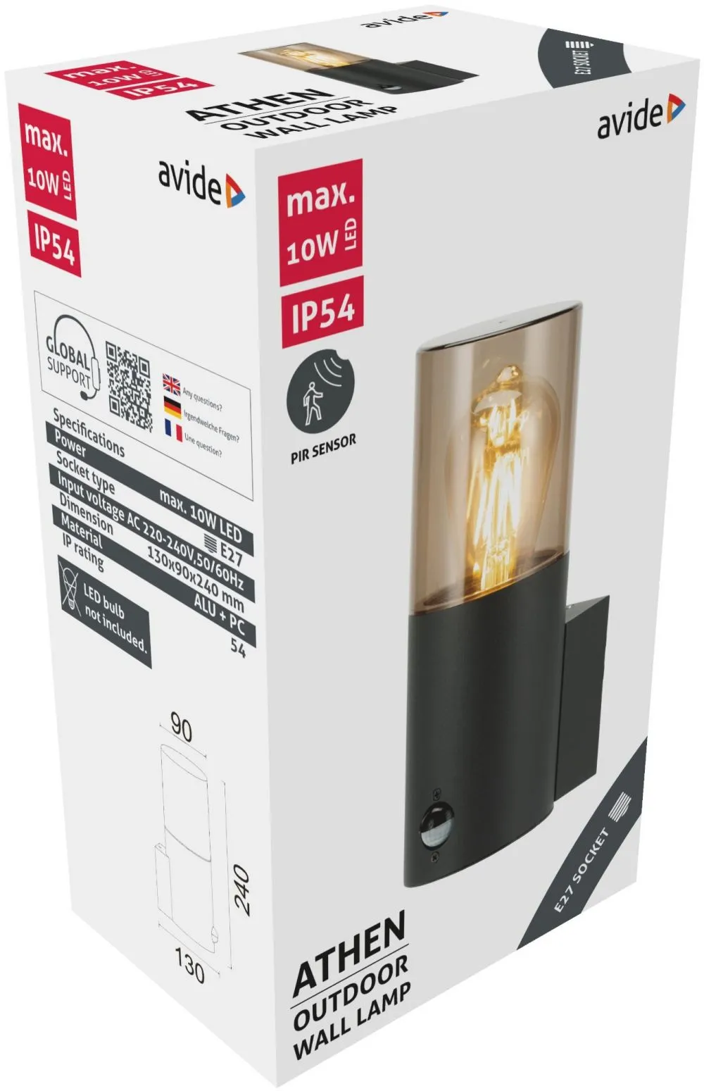 Avide kültéri fali lámpa Athen PIR 1xE27 IP54