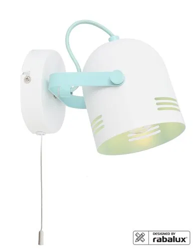 A fémből készült Minuet spotlámpa fehér és menta színkombinációjával modern lakásunk üde színfoltja lehet. A Minuet a Rábalux saját tervezésű modellje, amelyet elsősorban a gyerekszobába ajánlunk. A harang alakú, állítható lámpafejet kerek, fehér dísztalp egészíti ki. A fali lámpa megjelenését az egyedi dizájnon és a friss színeken túl a jellegzetes kis húzókapcsoló teszi különlegessé. A spot lámpa egy darab energiatakarékos, legfeljebb 15 W teljesítményű fényforrással használható, a foglalat típusa E14. Ízlésünktől függően választhatunk hozzá meleg vagy természetes fehér fényű fényforrást. A Minuet lámpa méretei a következők: szélessége 120 mm, magassága 140 mm, faltól való távolsága 160 mm. Ezt a modellt fényforrás nélkül szállítjuk.