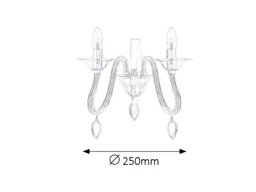 Klasszikus megjelenésű fali lámpa 2 db foglalattal. 25 cm széles, króm színű fémből és fehér színű műanyagból készített szerkezet, IP20-as védettséggel. A lámpatest E14-es foglalatkialakítású, 2x max. 40W teljesítményű energiatakarékos izzókkal is használható.