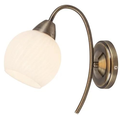 Klasszikus megjelenésű fali lámpa 1 db foglalattal. 26 cm kinyúlású, 24 cm magas, antik bronz színű fém lámpatest fehér színű üveg lámpabúrával. A lámpatest E-14-es fogalatkialakítású, max. 40W teljesítményű fényforrással használható.