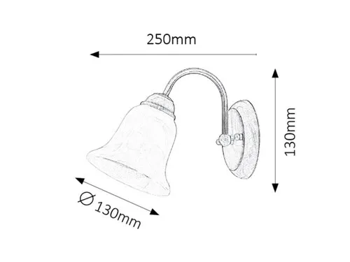 Klasszikus megjelenésű fali lámpa 1 darab foglalattal. 25 cm kinyúlású, 13 cm magas, bronz színű fémből készített lámpatest 13 cm átmérőjű, fehér alabástrom üvegbúrával. A lámpatest E14-es foglalatú, max. 40W teljesítményű halogén vagy energiatakarékos fényforrással használható.