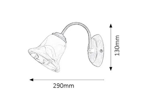 Mediterrán stílusú fali lámpa. Antik barna színű fém szerkezet barna színű alabástromüvegbúrával. E14-es foglalatú, maximum 40W teljesítményű kompakt vagy LED fényforrással is használható. Kialakításának köszönhetően a fényforrás cseréje, illetve a lámpatest tisztítása gyorsan és egyszerűen elvégezhető.