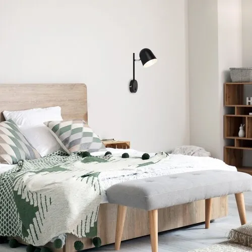 Az indusztriális stílusú Egon fali lámpa a nappali vagy a hálószoba berendezésének jellegzetes darabja lehet. A matt fekete lámpatestből és fekete búrából álló modell teljes egészében fémből készült, és kerek dísztalp segítségével rögzíthető a falra. A harang formájú búra alul nyitott, így a kiáramló fény elegendő lehet olvasáshoz vagy laptopozáshoz. Az Egon egy darab, legfeljebb 40 W teljesítményű fényforrással használható, a foglalat típusa E14. Ha meghitt, otthonos hangulatot szeretnénk varázsolni a szobába, válasszunk a lámpához meleg fehér fényű fényforrást. Az Egon a dísztalpon elhelyezett billenőkapcsolóval működtethető. A lámpa méretei a következők: szélessége és a búra átmérője 115 mm, magassága 330 mm, faltól mért távolsága 180 mm. Ezt a modellt fényforrás nélkül szállítjuk.