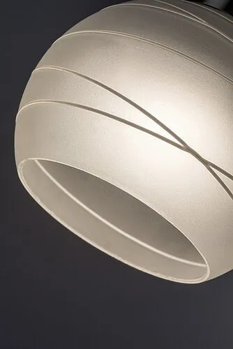 Időtlen megjelenésű spotlámpa 1 db foglalattal. 15 cm magas, szatin króm színű fém lámpatest és fehér színű, csíkozott mintás üveg lámpabúra, IP20-as védelemmel. A lámpatest E-14-es foglalatú, max. 40W teljesítményű energiatakarékos fényforrással is használható.