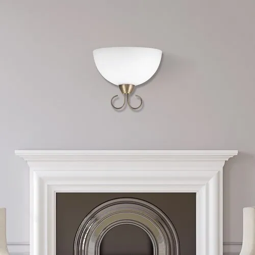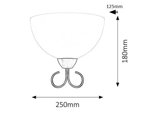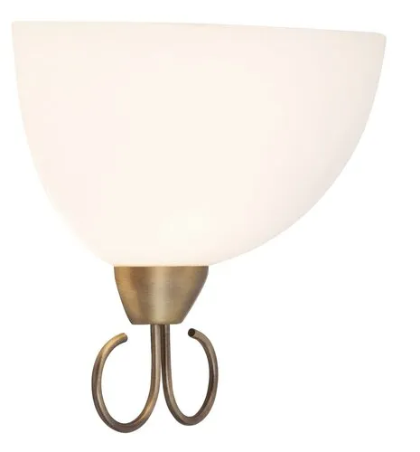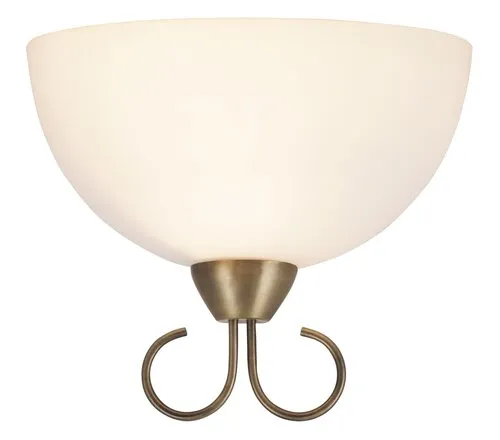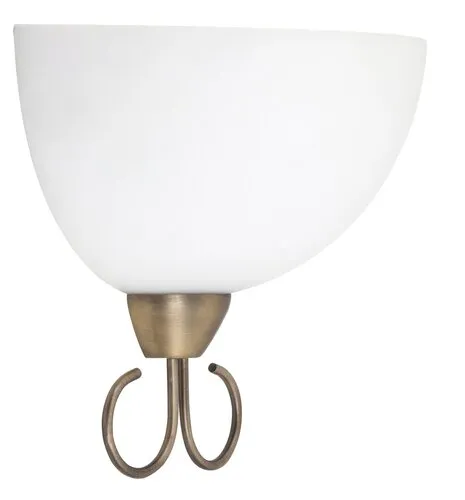 Klasszikus megjelenésű fali lámpa 1 db foglalattal. 18 cm magas, 25 cm széles, bronz színű fém lámpatest fehér színű üveg lámpabúrával. A fali lámpa E-27-es foglalatú, max. 25W teljesítményű energiatakarékos fényforrással is használható.