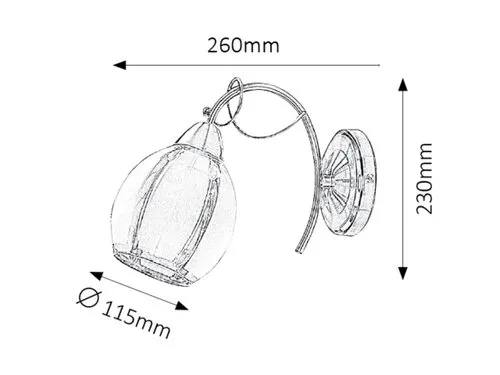 Klasszikus megjelenésű fali lámpa 1 db foglalattal. 26 cm a faltól mért távolsága, 11,5 cm magas, bronz színű fém test üveg lámpabúrával. A lámpatest E27-es fogalatkialakítású, max. 60W teljesítményű fényforrással használható.