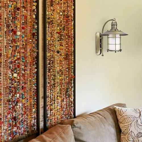 Rusztikus megjelenésű fali lámpa 1 db foglalattal. 27 cm kinyúlású, 30 cm magas és 23 cm széles, bronz színű fémből készített lámpatest opálüvegbúrával. A lámpatest E27-es foglalatú, max. 60W teljesítményű halogén vagy energiatakarékos fényforrással használható.