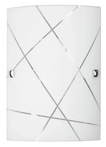 Modern megjelenésű fali lámpa, 18 x 26 cm-es méretben, fém szerkezettel, fehér színű, vonal mintás, vastag opálüvegbúrával. E27-es foglalatban maximum 60W teljesítményű, halogén vagy LED fényforrással is használható.