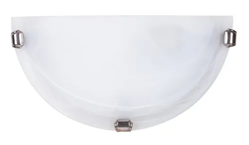 30 cm átmérőjű, klasszikus stílusú fali lámpa. Fém és műanyag szerkezet kiváló minőségű, vastag, fehér alabástromüveg lámpabúrával, króm színű rögzítő körmökkel. E27-es foglalatú, maximum 60W teljesítményű, halogén vagy LED fényforrással is használható.