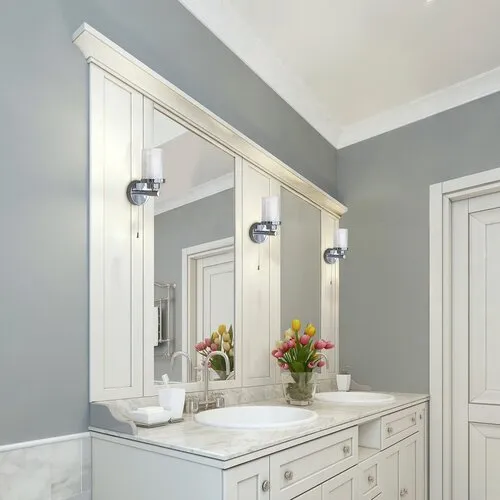 Az Aviva fürdőszobai fali lámpa nagyszerű választás, ha kiegészítő fényforrásra van szükségünk a mosdó fölött, a tükör közelében. A krómszínű, fém lámpatestet dupla, opál és átlátszó üvegbúra egészíti ki, s a falikar kerek dísztalp segítségével rögzíthető a falra. A külső, átlátszó üvegből készült búrának és kialakításának köszönhetően nagy felületen engedi ki a fényt a lámpa belsejéből. Az Aviva stílusos húzókapcsolóval működtethető. A falikar egy darab, legfeljebb 28 W teljesítményű fényforrással használható, a foglalat típusa G9. Ha kellemes, hangulatos megvilágítást szeretnénk a fürdőszobába, válasszunk a lámpához meleg fehér fényű fényforrást. Az Aviva IP44-es védettséggel rendelkezik, amely garantálja, hogy legfeljebb 1 mm átmérőjű tárgyak behatolása ellen, valamint bármilyen irányból fröccsenő víz ellen védett. A fali lámpa méretei a következők: magassága 195 mm, a búra átmérője 80 mm, a beépítési átmérő 90 mm, a lámpa faltól mért távolsága 130 mm. Ezt a modellt fényforrás nélkül szállítjuk.