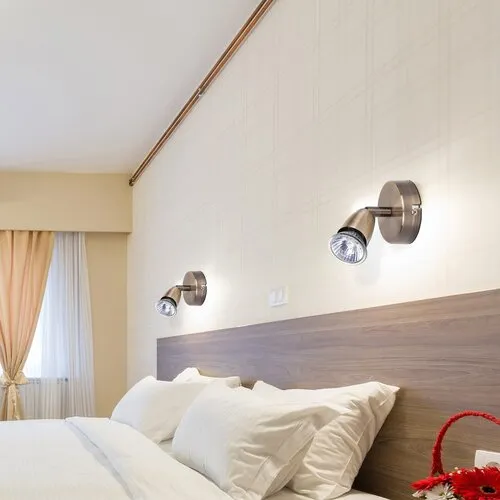 Időtlen megjelenésű fali spotlámpa 1 db foglalattal. 11 cm magas, bronz színű, fémből készített lámpatest és pozícionálható lámpabúra. A lámpatest GU10-es foglalatkialakítású, max. 50W teljesítményű energiatakarékos fényforrással is használható.