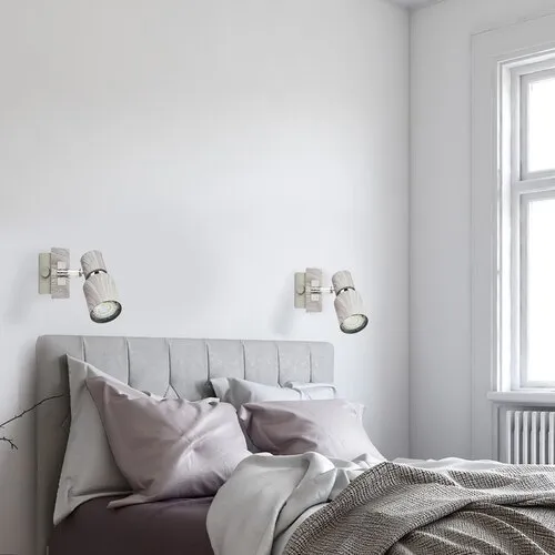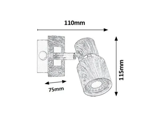 Modern megjelenésű fali spotlámpa 1 db foglalattal, beépített kapcsolóval. 11,5 cm magas, szürke tölgy és króm színű, fémből készített lámpatest és pozícionálható lámpabúra. A lámpatest GU10-es foglalatú, max. 50W teljesítményű energiatakarékos fényforrással is használható.