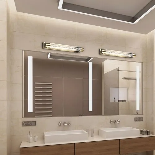 Az Abbey fürdőszobai fali lámpa a klasszikus stílus képviselői közé tartozik. Az antik bronz színű lámpatestet átlátszó búra egészíti ki, melyen keresztül láthatóvá válik a lámpa buborékos dizájnja. Az Abbey a mosdó, illetve a tükör fölé szerelve meleg fehér fénnyel világítja meg a fürdőt, otthonos, kellemes hangulatot teremtve. A fémből és műanyagból készült fali lámpa két darab beépített, energiatakarékos LED fényforrással rendelkezik. Az A+ energiaosztályba tartozó fényforrások teljesítménye 10 W, fényerejük 900 lumen, színhőmérsékletük 3000 K, élettartamuk pedig nem kevesebb, mint 30 000 óra. Az Abbey fali lámpa IP44-es védettséggel rendelkezik, amely védelmet garantál legfeljebb 1 mm átmérőjű tárgyak behatolása, valamint bármilyen irányból fröccsenő víz ellen. A lámpa méretei a következők: hossza 400 mm, faltól mért távolsága 50 mm. Az Abbey fürdőszobai fali lámpára 5 év garanciát vállalunk.