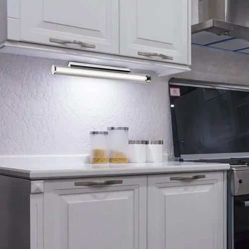 Paula termékcsaládunk új, beépített LED-es taggal bővült! Modern, egyszerű formavilág jellemzi ezt a praktikus pultmegvilágító lámpát. A króm színű fém lámpatest üveg és műanyag kombinációvan készült, lekerekített lámpabúra egészíti ki. Paula lámpánk 59 cm széles, IP20-as védelemmel rendelkezik. Ez a fali lámpa beépített LED fényforrást tartalmaz, mely 12 W teljesítmény mellett 1000 lumenes fényerőt és 4000 Kelvines, természetes fehér színű fényt biztosít. A termékben a fényforrás nem cserélhető. A Paula pultmegvilágító lámpára 5 év garanciát biztosítunk!