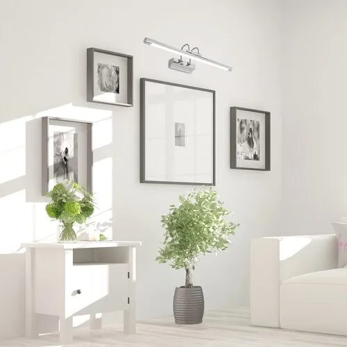 A Ludovic képmegvilágító lámpa kitűnő választás, ha a nappalink vagy dolgozószobánk falán elhelyezett, nagy becsben tartott fotóinknak, festményeinknek szeretnénk méltó megvilágítást biztosítani. A hagyományos stílusú, króm színű lámpa fémből és műanyagból készül, beépített LED fényforrása természetes fehér fényt bocsát ki. A 4000 K színhőmérsékletű fényforrás energiatakarékos teljesítménye 13 W, fényereje 1170 lumen, élettartama pedig mintegy 30 000 óra. A Ludovic lámpa méretei a következők: hossza 550 mm, magassága 120 mm, benyúlása 150 mm. Erre a nagyszerű képmegvilágító lámpára 5 év garanciát vállalunk.