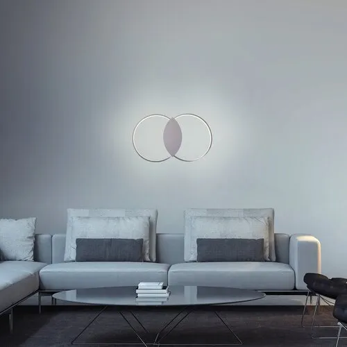 Az Andrei indirekt fali lámpa sokkal több, mint pusztán fényforrás: modern nappalinkban felszerelve fantasztikus dekorációként működhet, hiszen mind formatervezésében, mind anyagában szemet gyönyörködtető ez a kerek formákból álló modell. A súrolt alumínium felületet nem véletlenül kedveljük oly sokan: elegáns, ugyanakkor trendi megjelenést kölcsönöz a lámpának. Az indirekt fényt beépített, energiatakarékos LED fényforrás biztosítja, melynek teljesítménye 24 W, fényereje 1380 lumen, élettartama pedig 20 000 óra. Az A energiaosztályba tartozó fényforrás színhőmérséklete 3000 K, azaz meleg fehér fényt sugároz. A fali lámpa teljes szélessége 550 mm, magassága 350 mm, faltól mért távolsága 50 mm. A nagyszerű Andrei indirekt lámpára 5 év garanciát vállalunk.